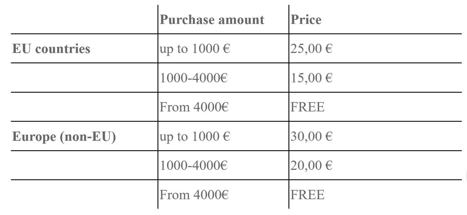 Delivery price to Europe countries: