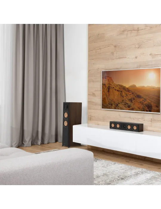 Mažo aukščio ir gylio, atnaujinta Klipsch Reference Premiere serijos centrinė garso kolonėlė.