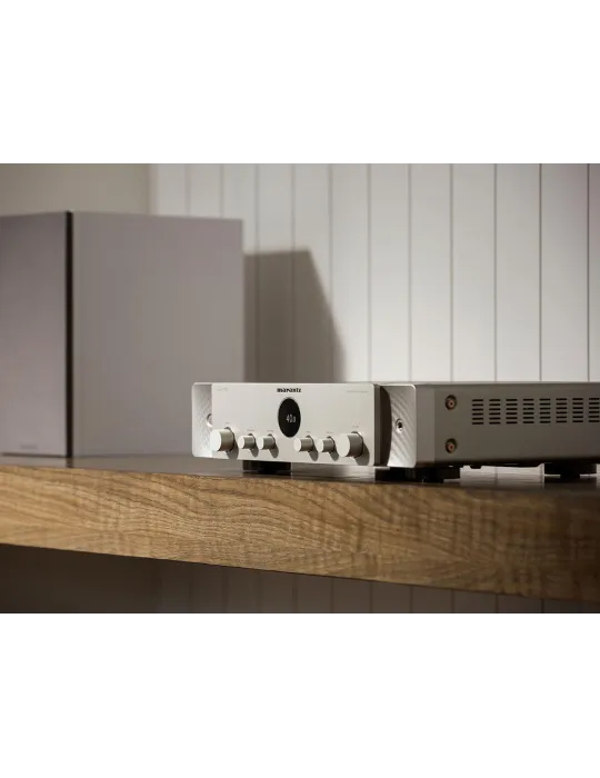 The fully discrete stereo amplifier produces clear, detailed, warm, spacious, and dynamic sound from any source.